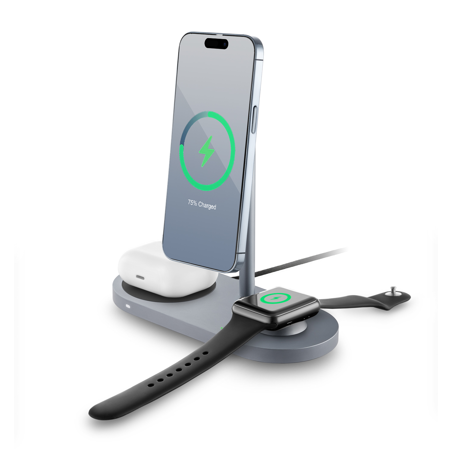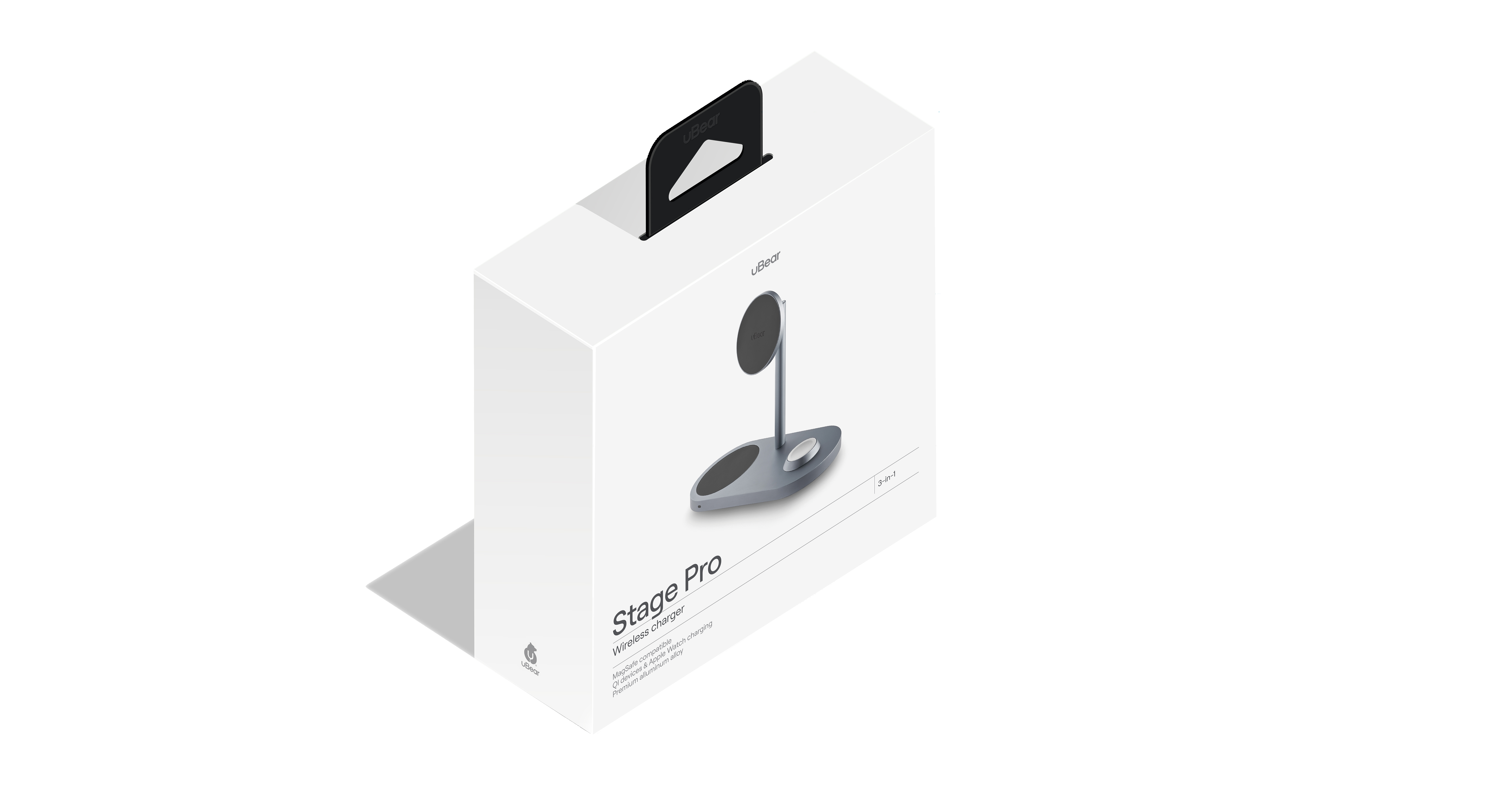 Беспроводное зарядное устройство uBear Stage Pro, 3-в-1, MagSafe совместимое, серый
